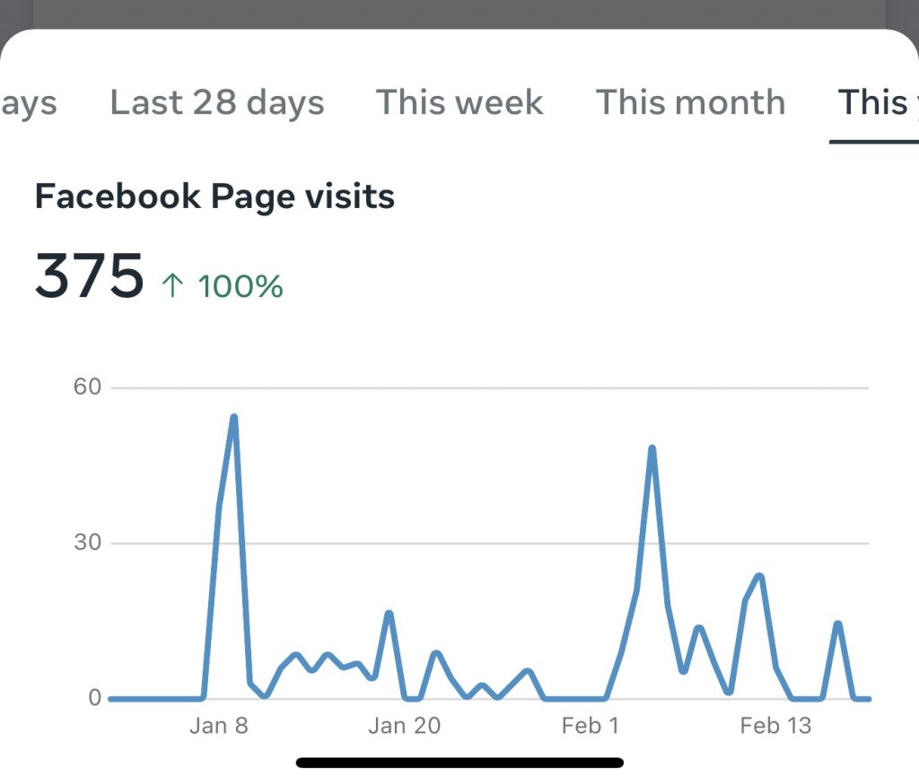 375 Facebook Page Visits (Yearly) – A 100% increase, showing that our strategies drive real engagement.