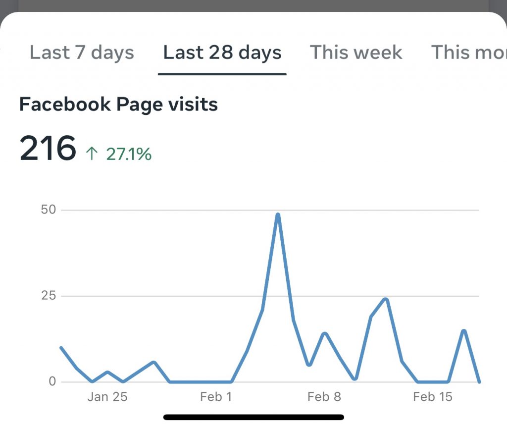 216 Facebook Page Visits (Last 28 Days) – A 27.1% increase, ensuring steady business growth.
