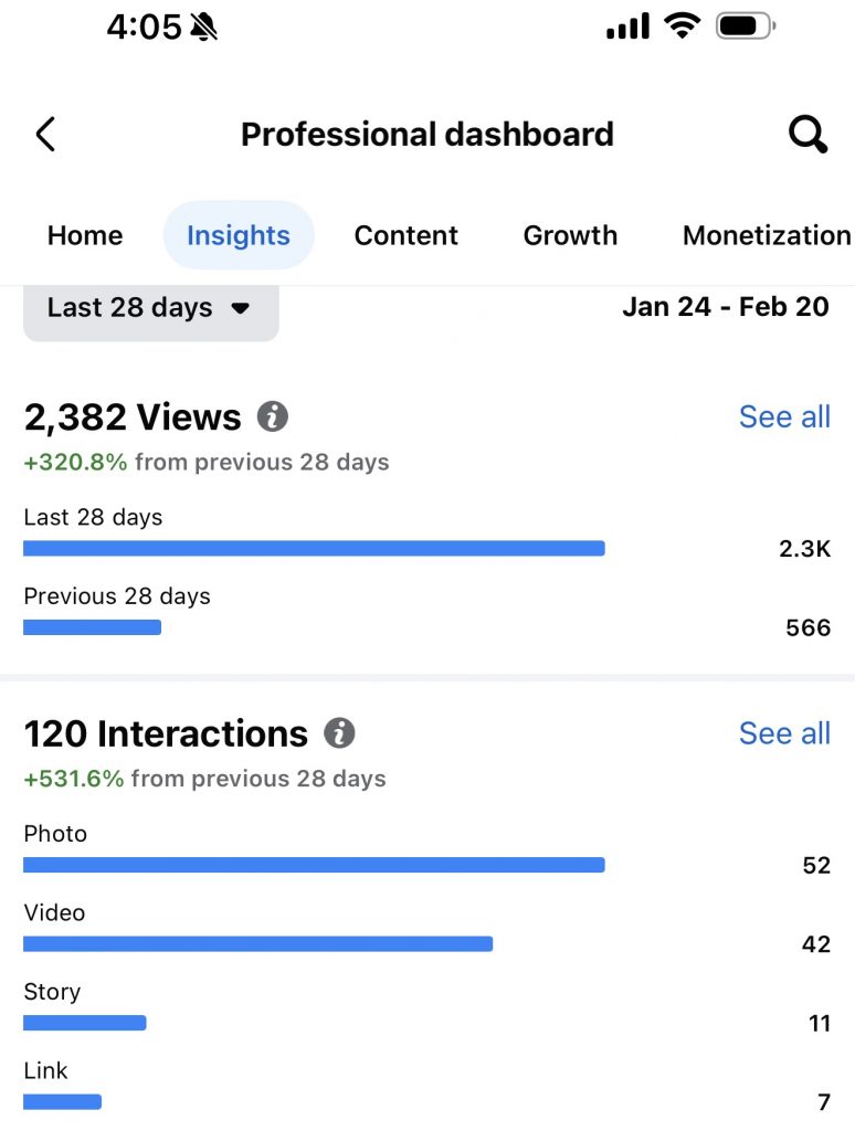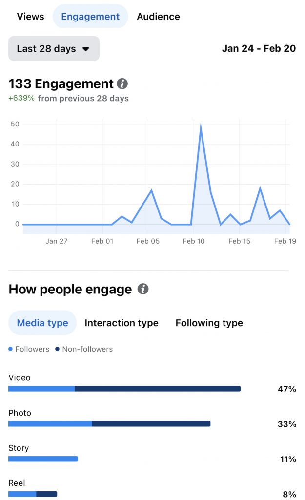 This customer went from almost no engagement to getting 133 potential customers’ attention in 28 days… 639% more than the 28 days previous!